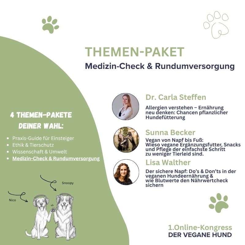 Zugriff auf das Themen-Paket deiner Wahl. Sichere dir die 3 Experten-Interviews des 1. Online-Kongresses DER VEGANE HUND, die dir den größten Mehrwert bringen!